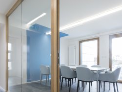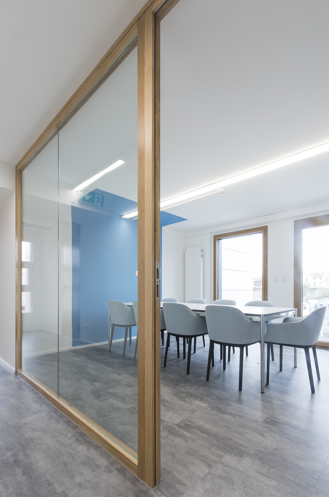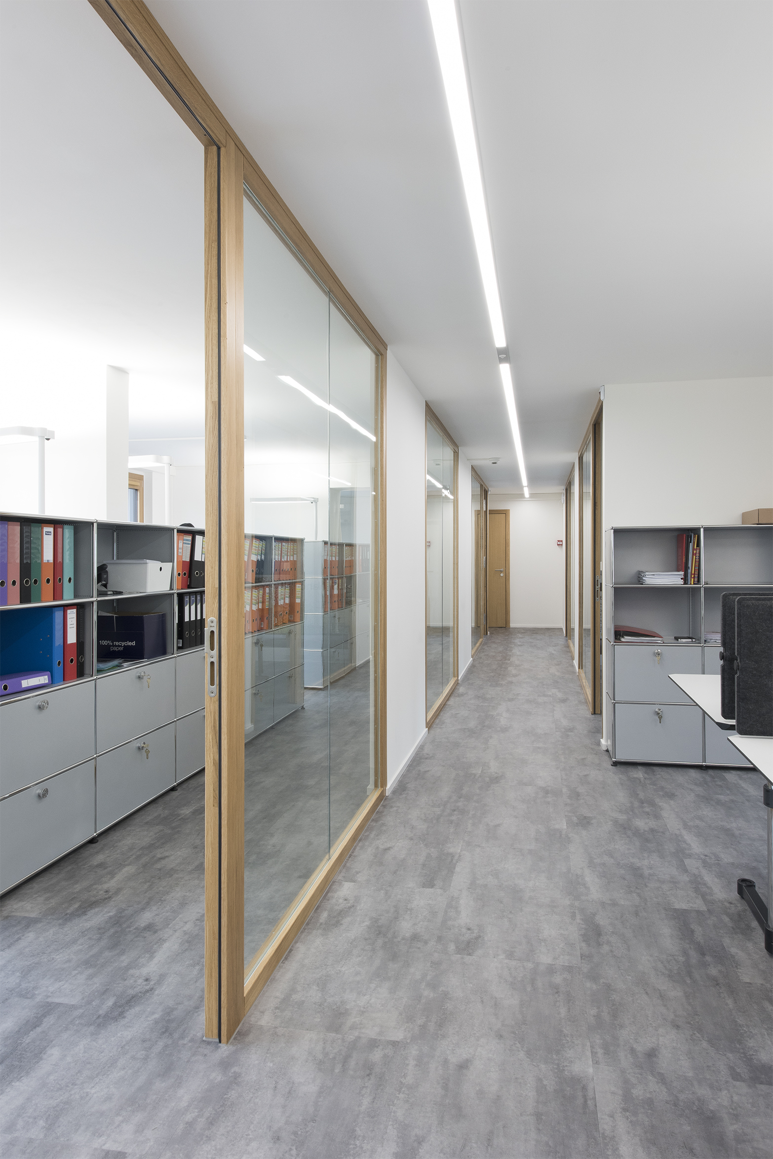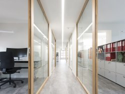 Les vitrages fixes Cristallo homologués EI60 avec montants/traverses offrent de nombreuses possibilités: intégration de portes coupe-feu battantes, coulissantes ou pivotantes, exécutions toute hauteur ou grandes dimensions, vitrage filant tout autour du cadre de porte, possibilité système complétement vitré.