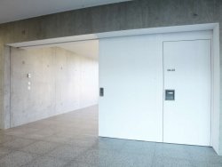 ► Fourniture et pose de portes coulissantes coupe-feu avec porte de fuite intégrée, de portes et vitrages coupe-feu EI30 et EI60, de portes pivotantes coupe-feu avec porte de fuite intégrée.